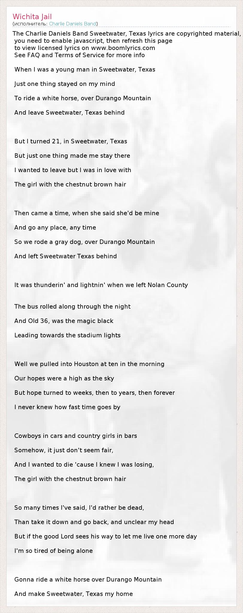 The Charlie Daniels Band Sweetwater, Texas lyrics are copyrighted material,