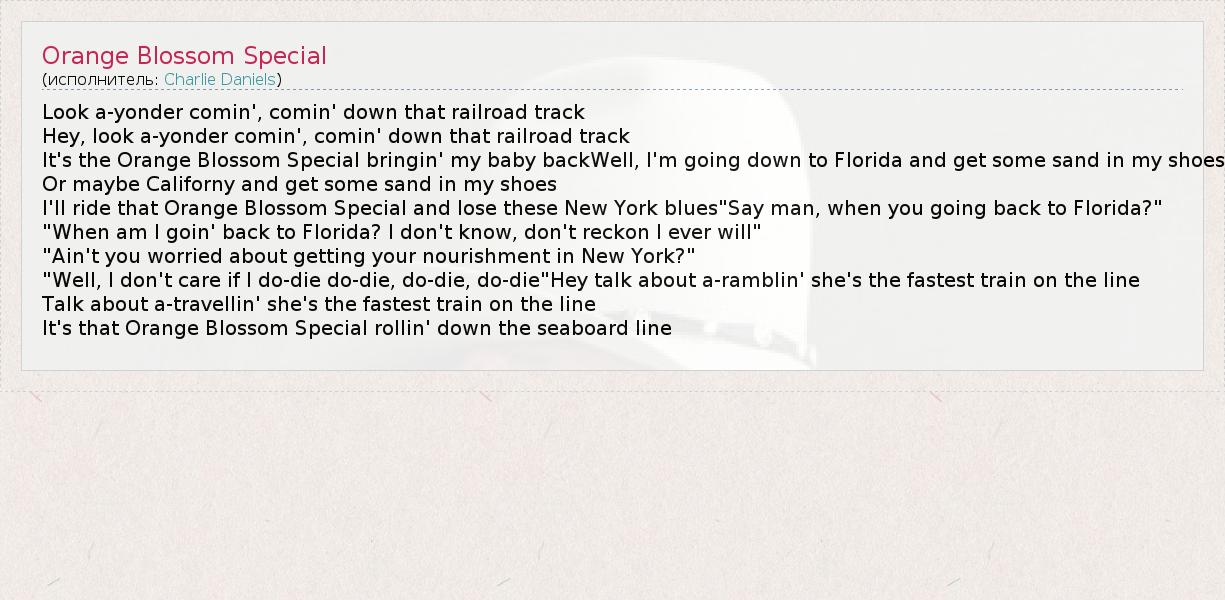 А как ты думаешь, о чем песня "Orange Blossom Special" ?
