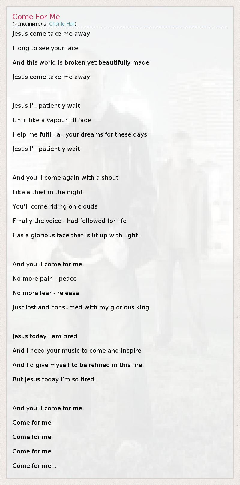 Это интересно:Новый Иерусалим (Novi Ierusalim) — христианская музыкальная группа. Образована в 1992 году в Белоруссии, позже переехала на Украину. Изначально работала как группа прославления.Коллектив записал 7 номерных альбомов начиная с 1993 года, среди которых 3 альбома мессианской музыки и 3 рок-альбома, а также снял 8 видеоклипов. Группа была лауреатом нескольких наград белорусского телевидения, а её... продолжение
