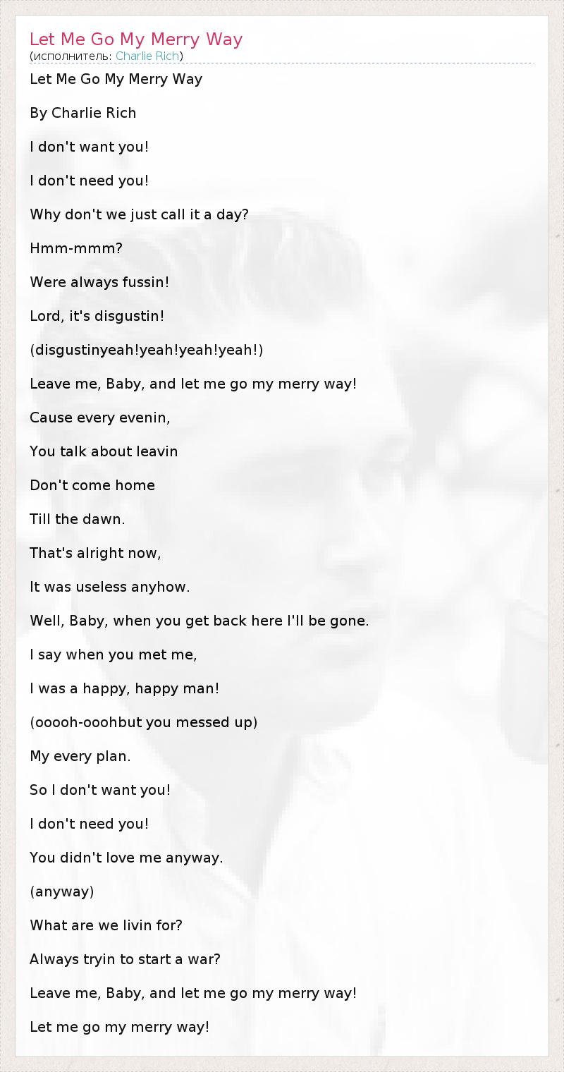 А как ты думаешь, о чем песня "Let Me Go My Merry Way" ?