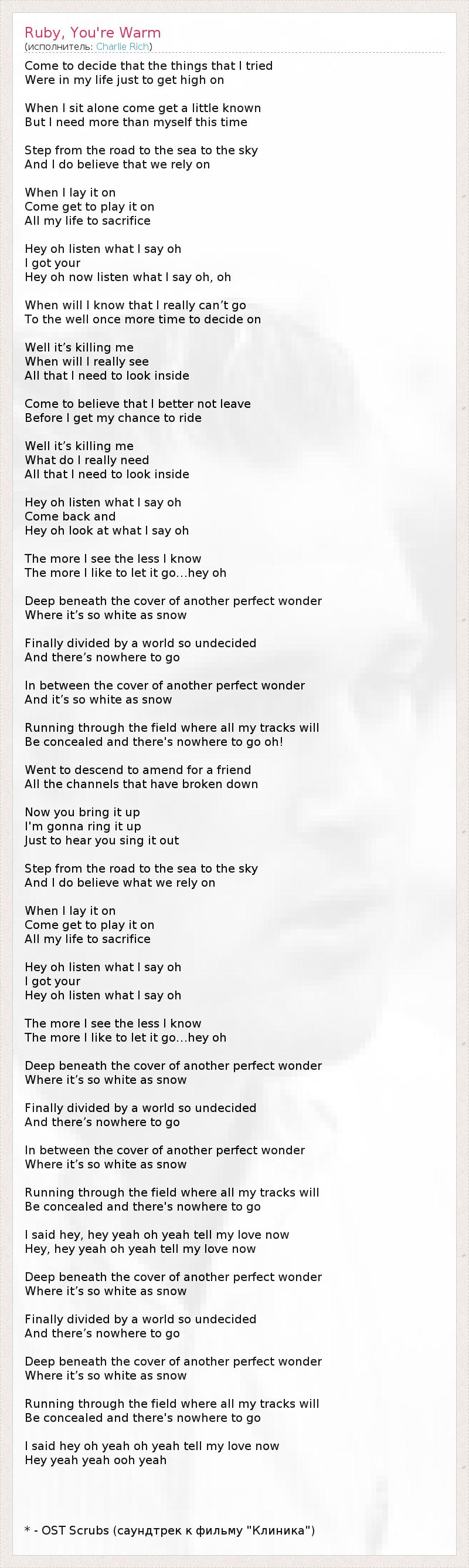 А как ты думаешь, о чем песня "Ruby, You're Warm" ?