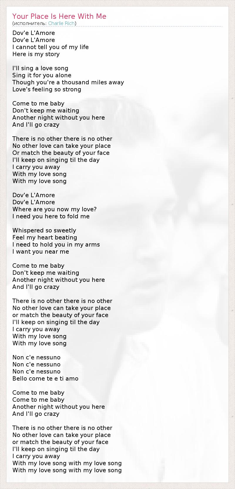 ГлавнаяИсполнителиCharlie RichYour Place Is Here With Me