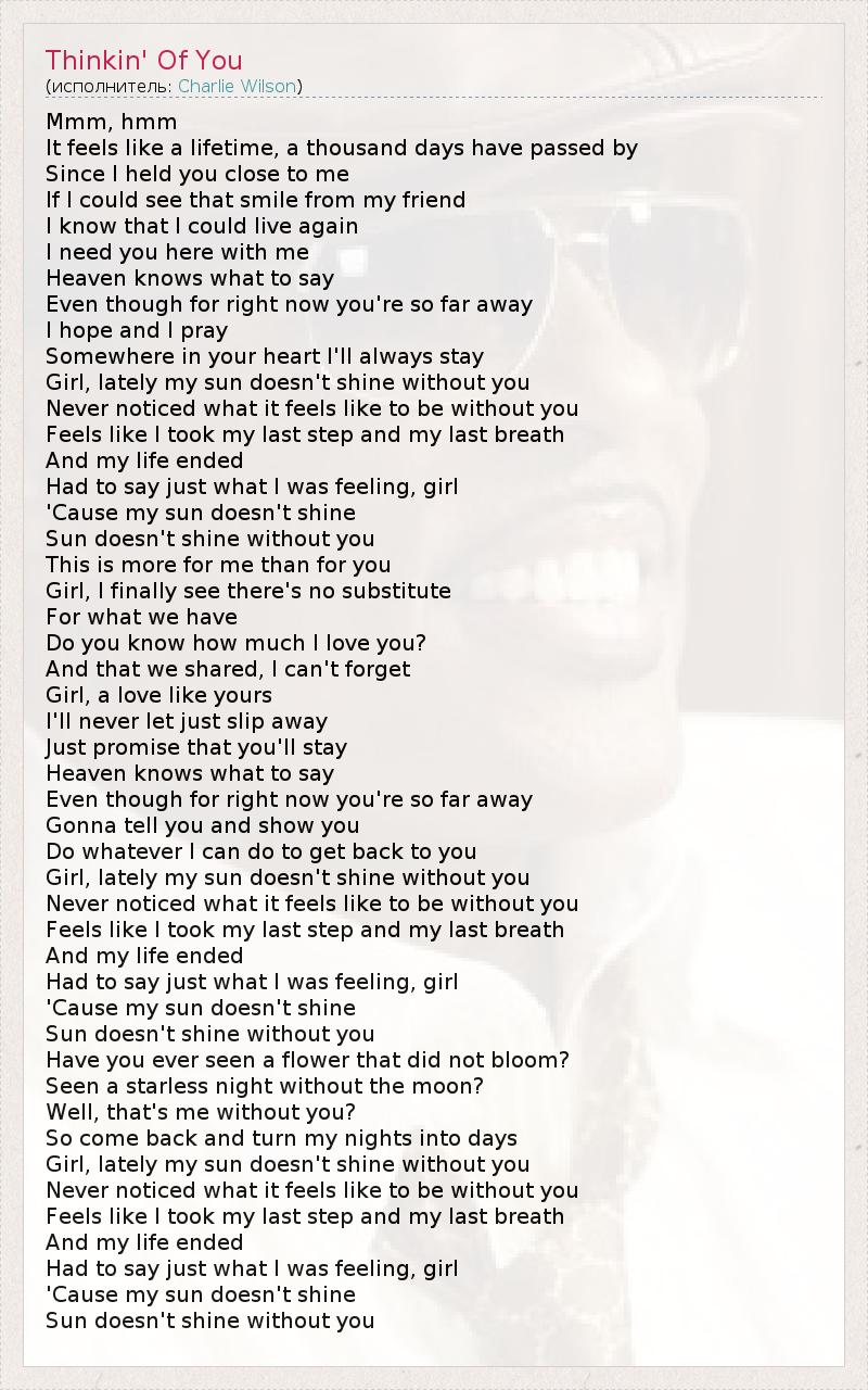 А как ты думаешь, о чем песня "Thinkin' Of You" ?