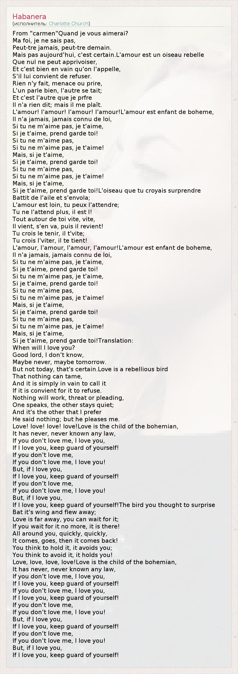 L'amour, l'amour, l'amour, l'amour!L'amour est enfant de boheme,