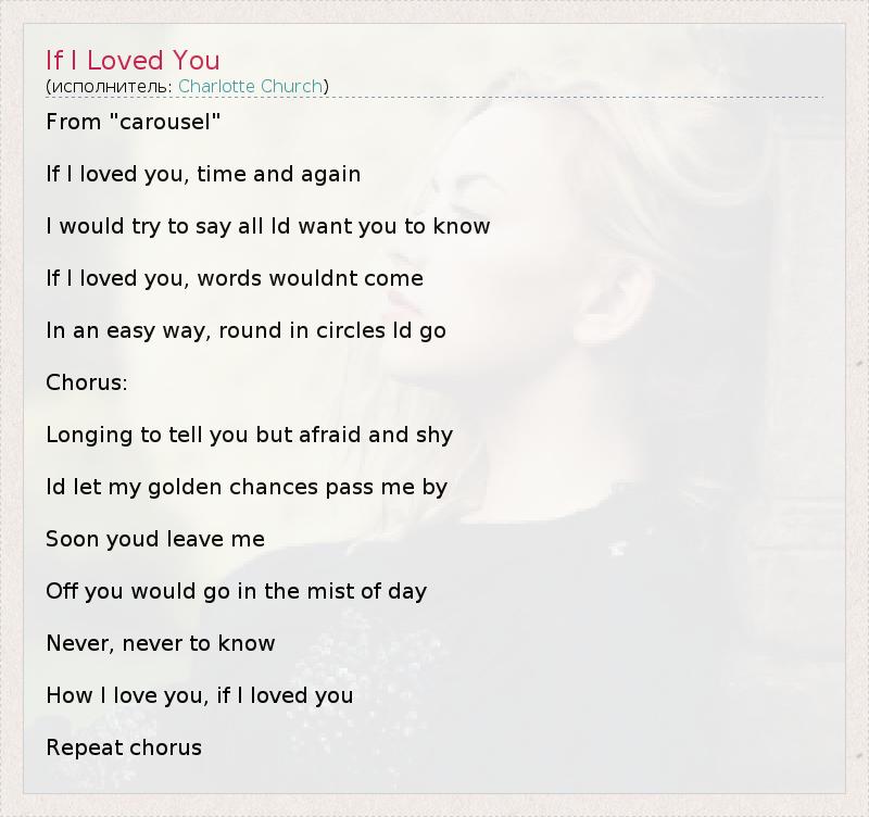 А как ты думаешь, о чем песня "If I Loved You" ?
