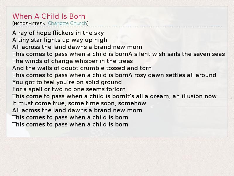 А как ты думаешь, о чем песня "When A Child Is Born" ?