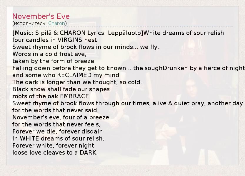 А как ты думаешь, о чем песня "November's Eve" ?
