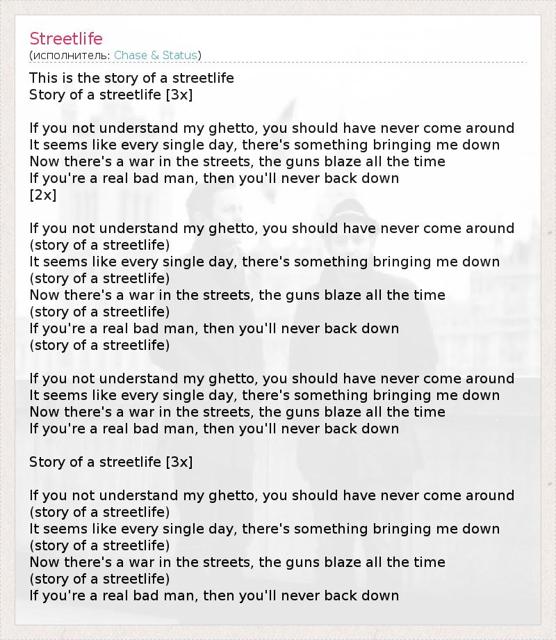 А как ты думаешь, о чем песня "Streetlife" ?