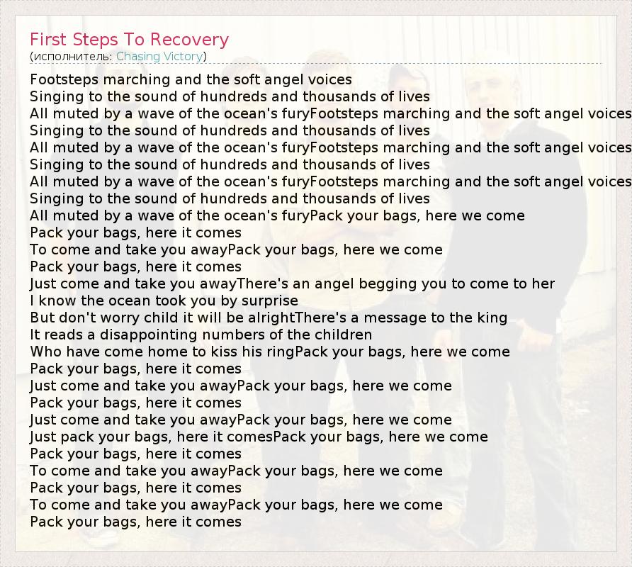 А как ты думаешь, о чем песня "First Steps To Recovery" ?