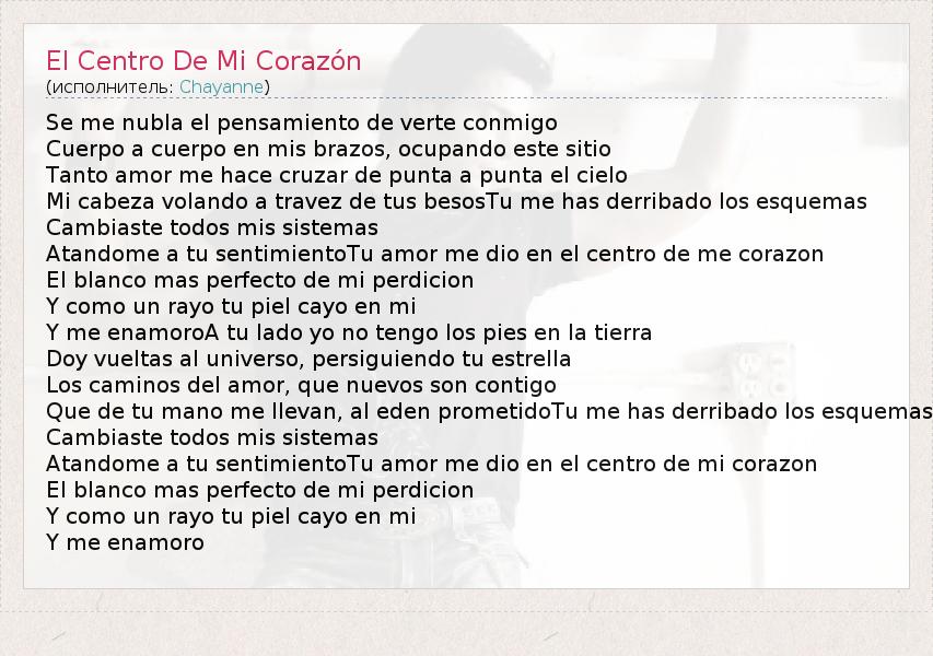 ГлавнаяИсполнителиChayanneEl Centro De Mi Corazón