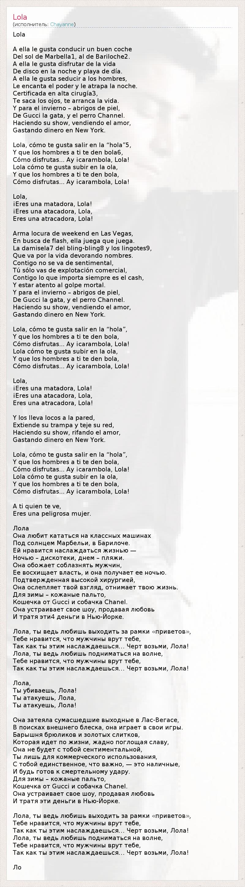 Лола, ты ведь любишь выходить за рамки «приветов»,