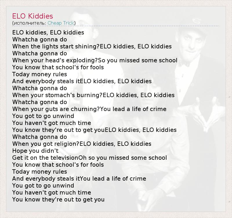 А как ты думаешь, о чем песня "ELO Kiddies" ?