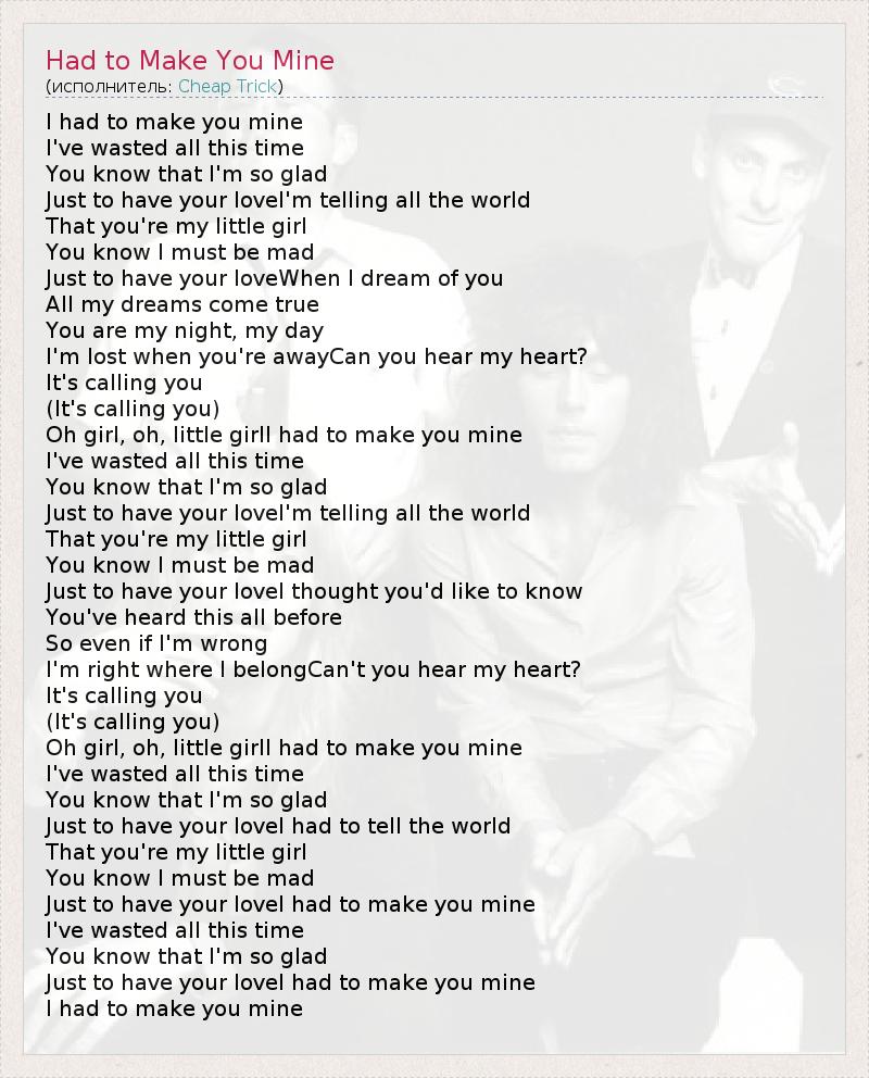 А как ты думаешь, о чем песня "Had to Make You Mine" ?