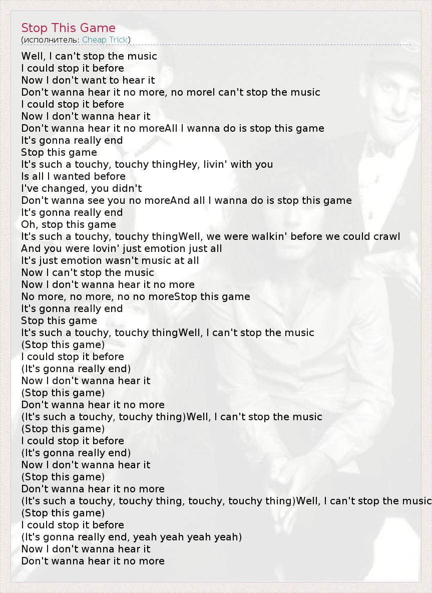 А как ты думаешь, о чем песня "Stop This Game" ?