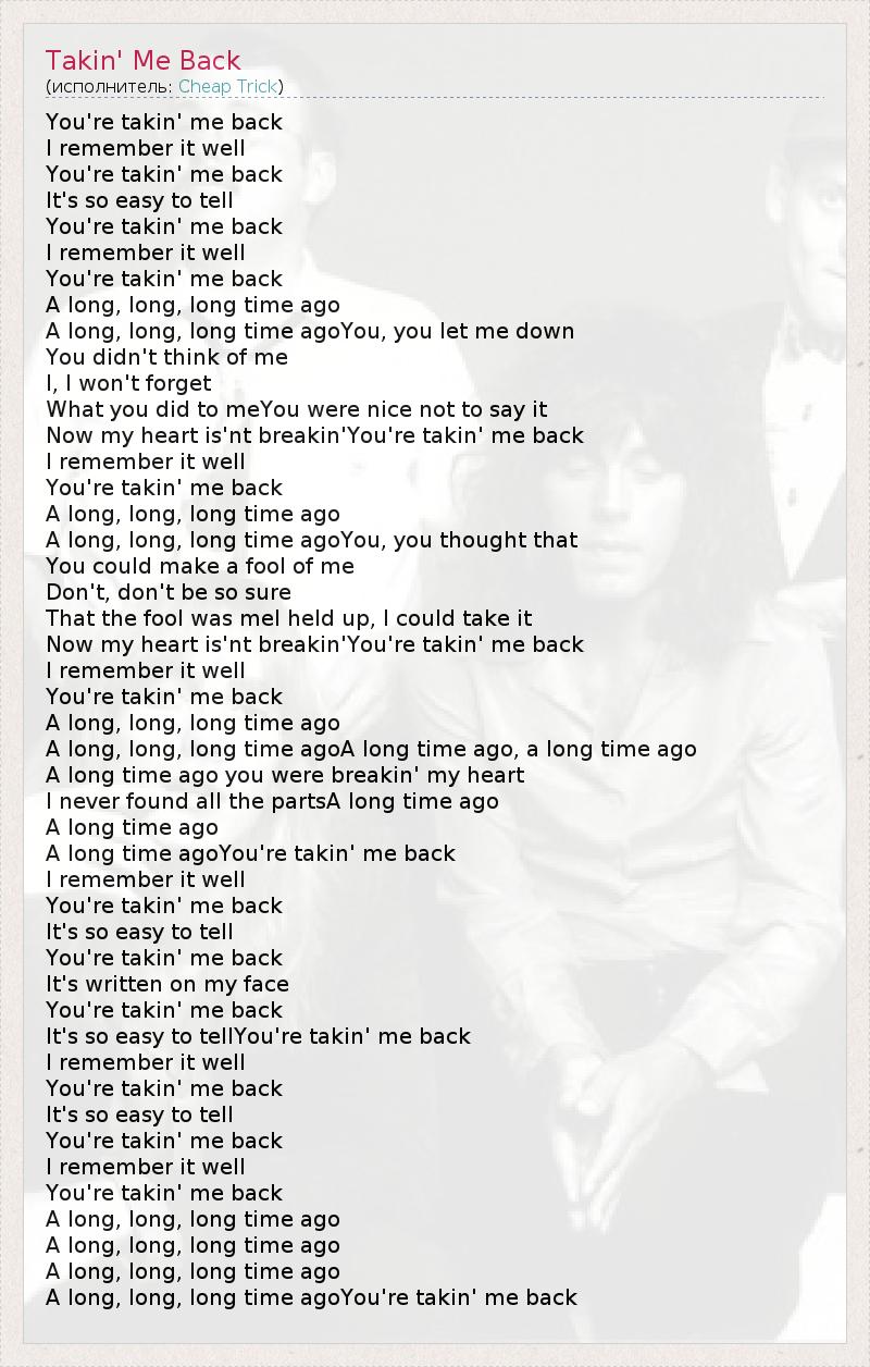 А как ты думаешь, о чем песня "Takin' Me Back" ?