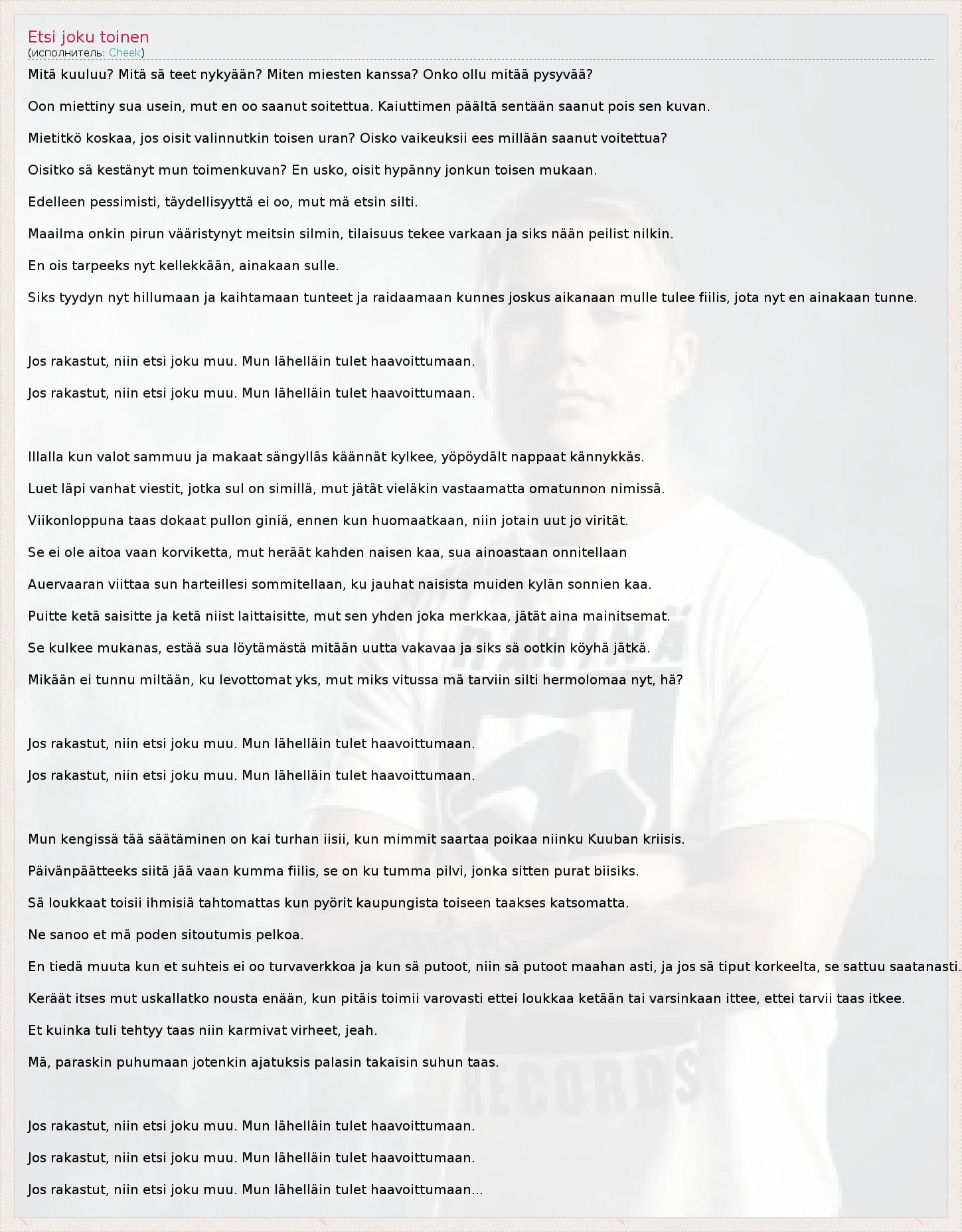 А как ты думаешь, о чем песня "Etsi joku toinen" ?