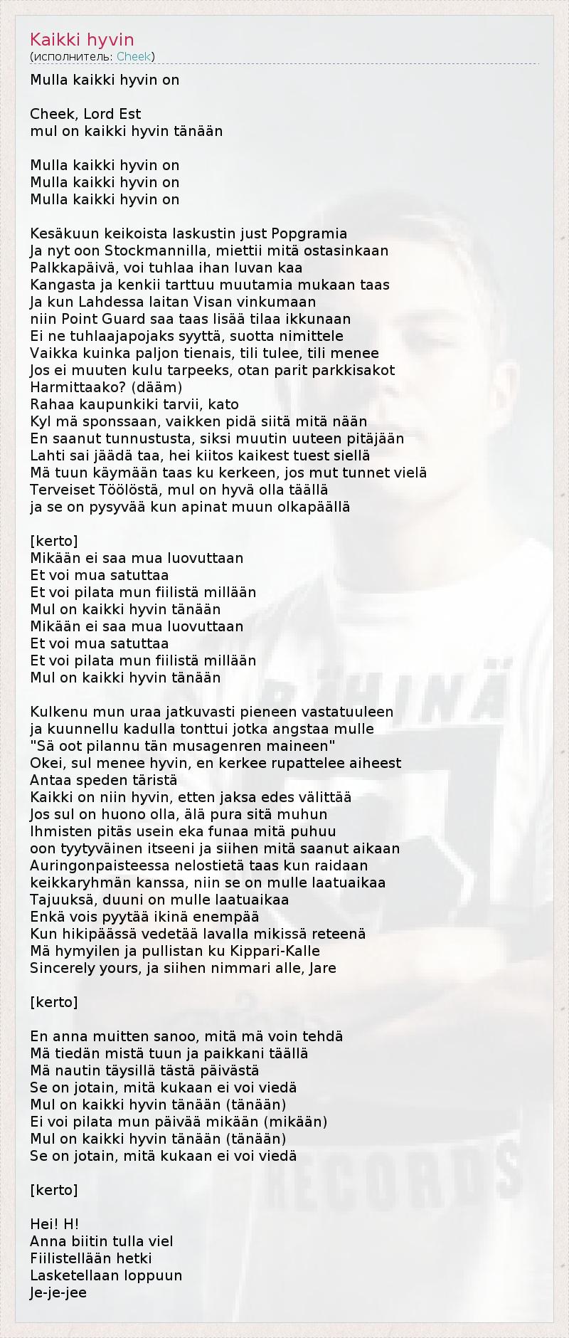 А как ты думаешь, о чем песня "Kaikki hyvin" ?