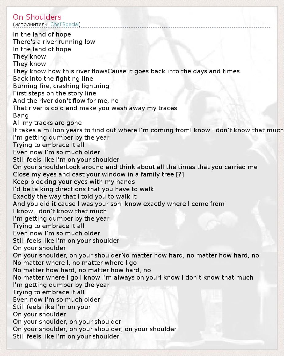 А как ты думаешь, о чем песня "On Shoulders" ?