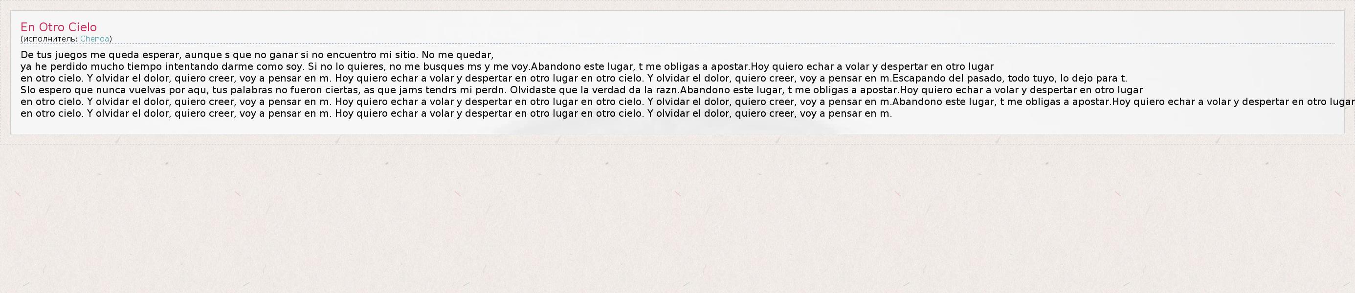 А как ты думаешь, о чем песня "En Otro Cielo" ?