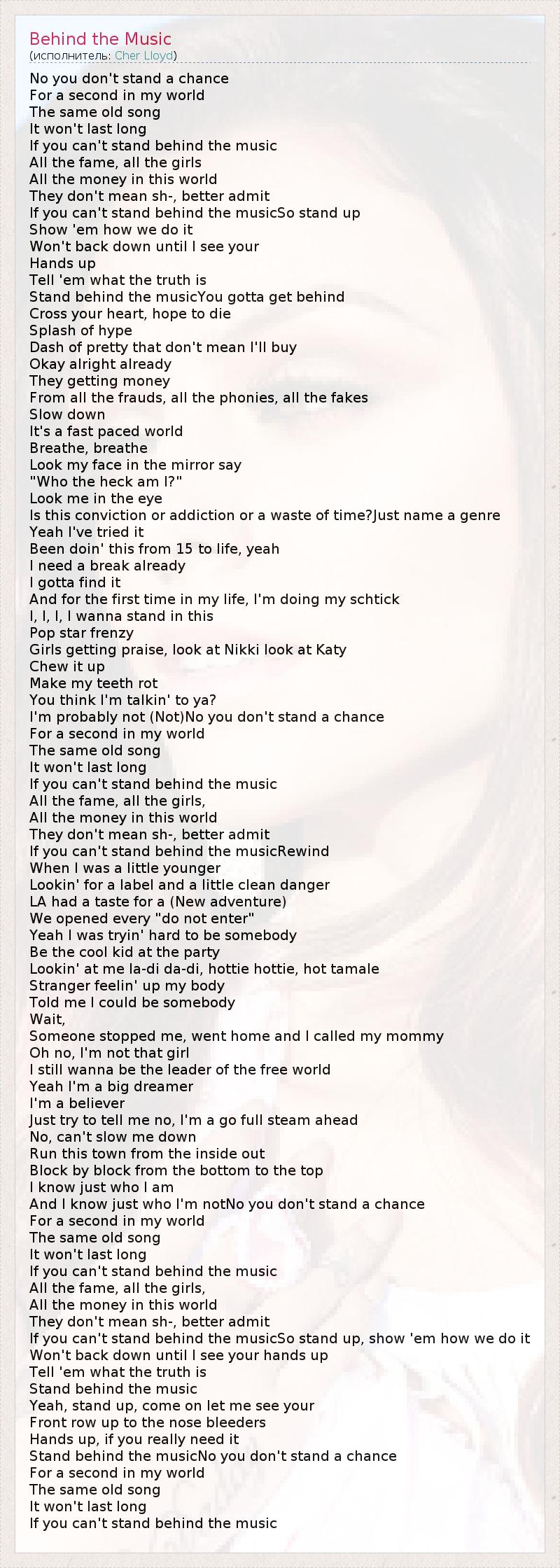 А как ты думаешь, о чем песня "Behind the Music" ?
