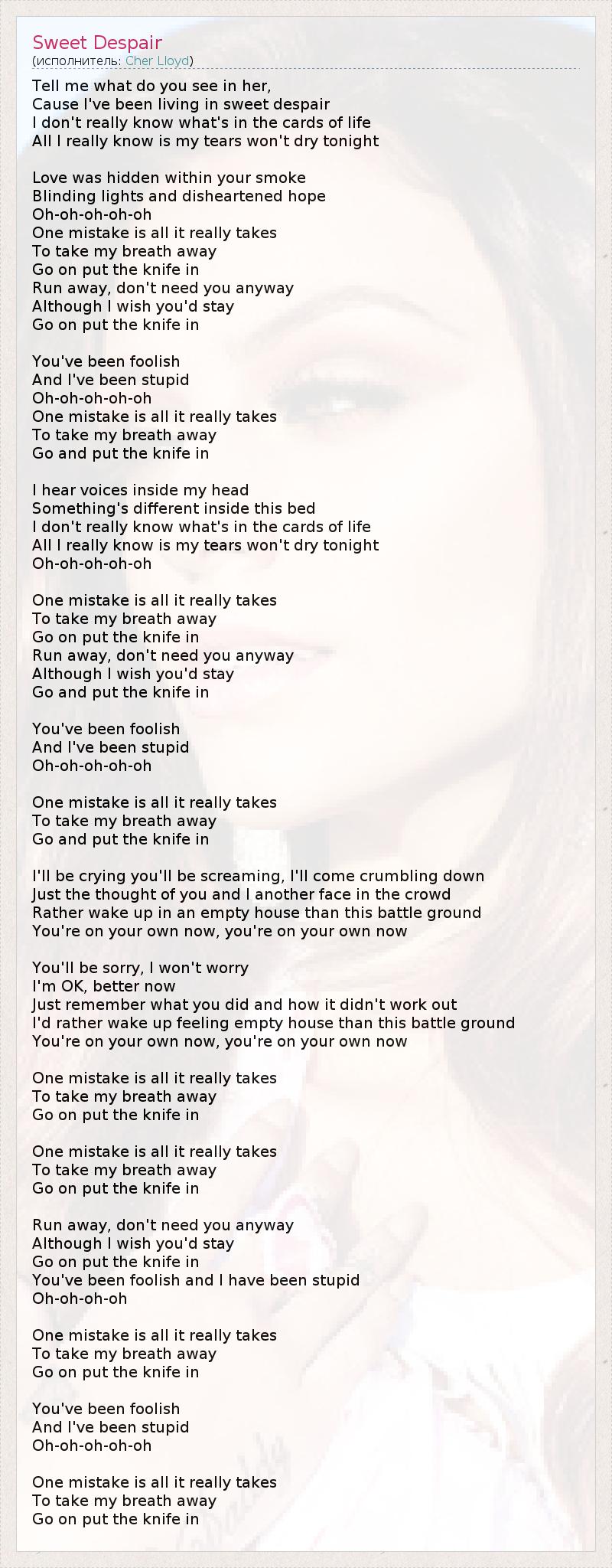 А как ты думаешь, о чем песня "Sweet Despair" ?