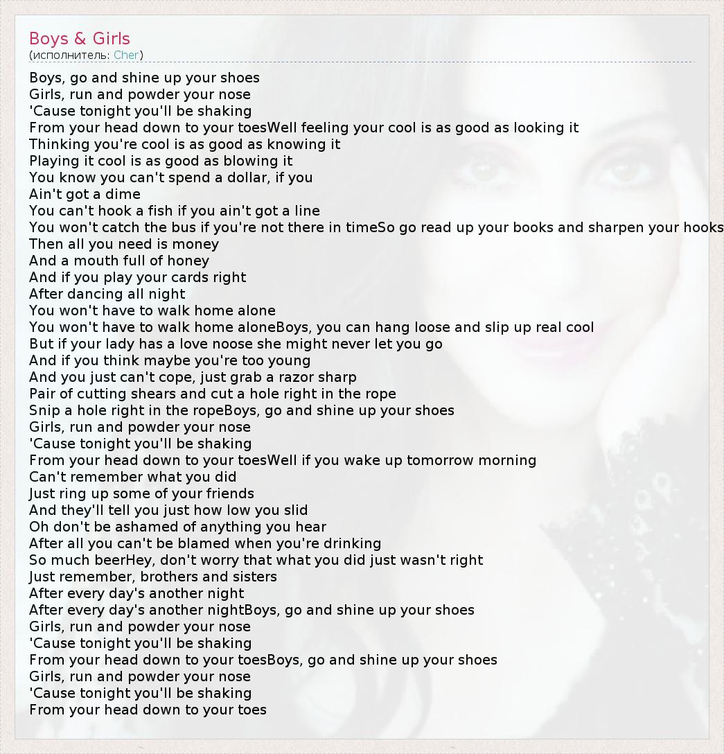 А как ты думаешь, о чем песня "Boys & Girls" ?