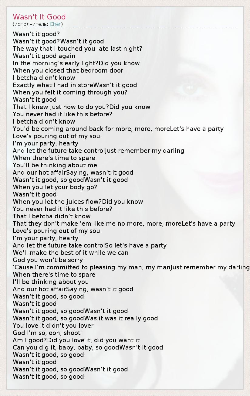 А как ты думаешь, о чем песня "Wasn't It Good" ?