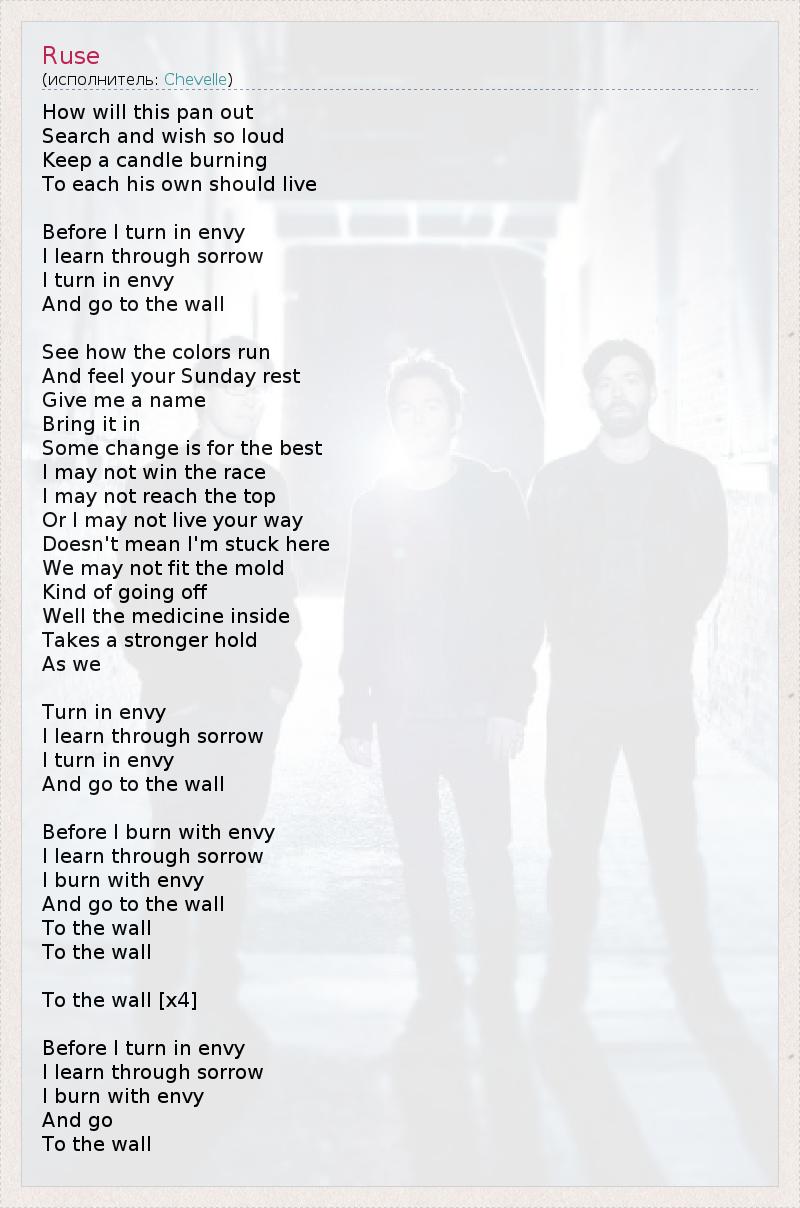 Это интересно:Chevelle — альтернативная группа, образованная в Чикаго, штате Иллинойс, в 1994 году, и изначально состоящая из 3-х родных братьев - Пита (вокал, гитара), Джо (бас-гитара) и Сэма (ударные) Лофлеров. В июле 2005 года Джо покинул группу, и на его место пришёл Дин Бернардини.Несмотря на тяжесть музыки, Chevelle никогда открыто не причисляли к металлу. Вообще, стиль их музыки чаще всего сравнивают со стилем... продолжение