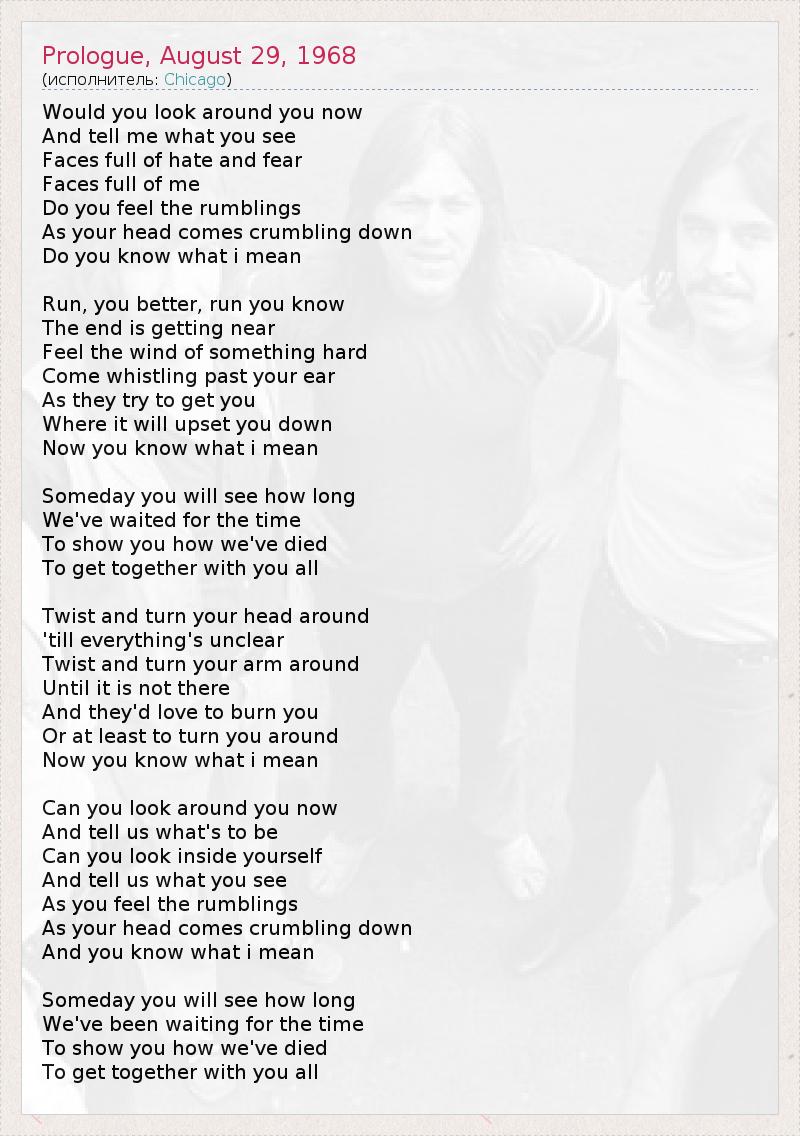 А как ты думаешь, о чем песня "Prologue, August 29, 1968" ?