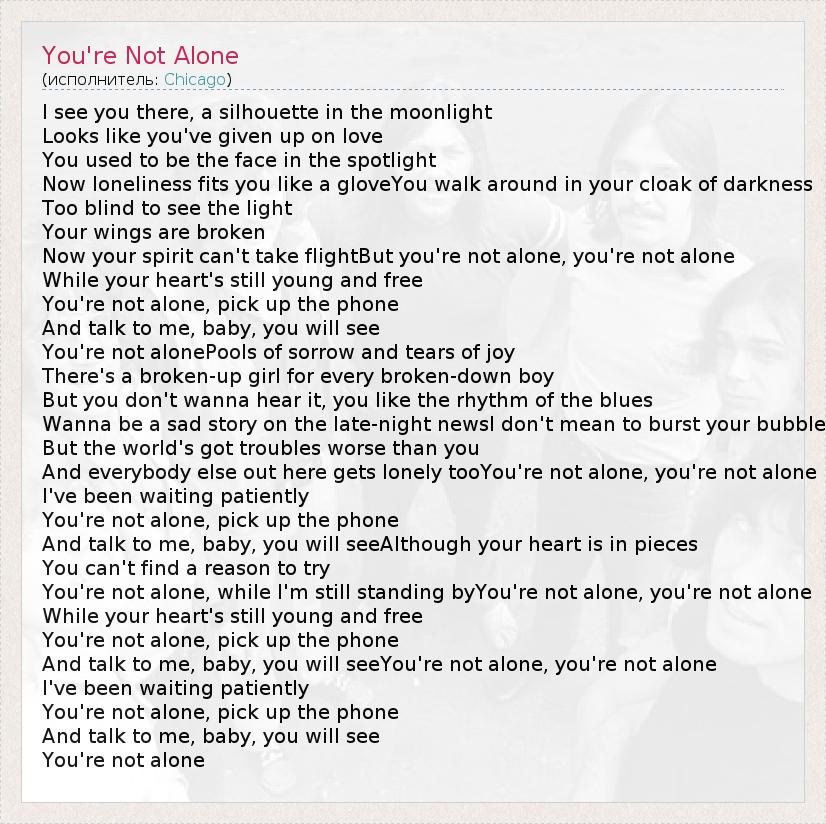 And talk to me, baby, you will seeYou're not alone, you're not alone