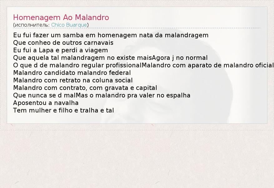 А как ты думаешь, о чем песня "Homenagem Ao Malandro" ?