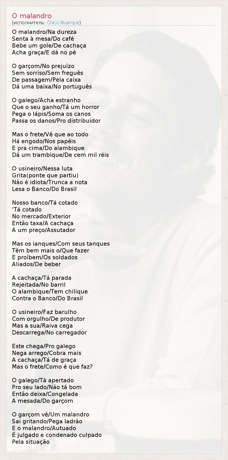 А как ты думаешь, о чем песня "O malandro" ?