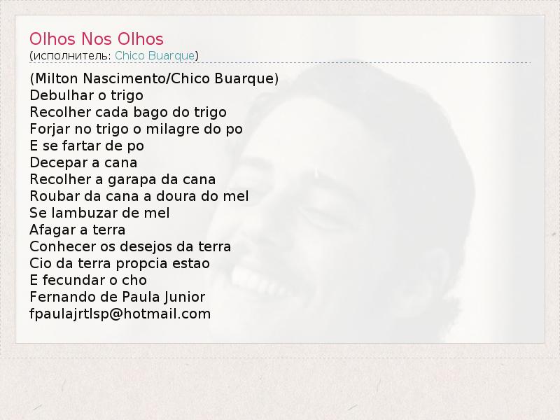 А как ты думаешь, о чем песня "Olhos Nos Olhos" ?
