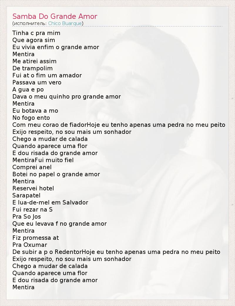 А как ты думаешь, о чем песня "Samba Do Grande Amor" ?