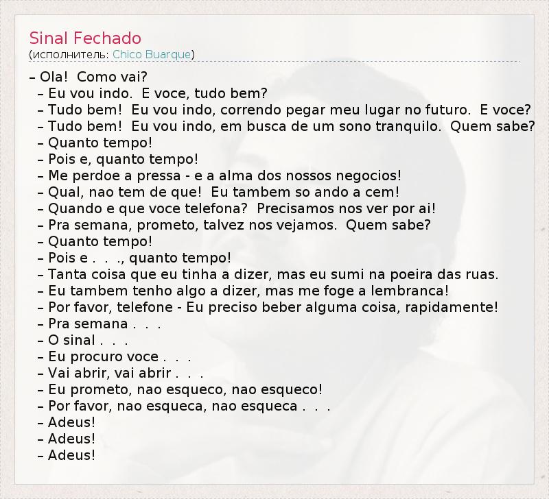А как ты думаешь, о чем песня "Sinal Fechado" ?