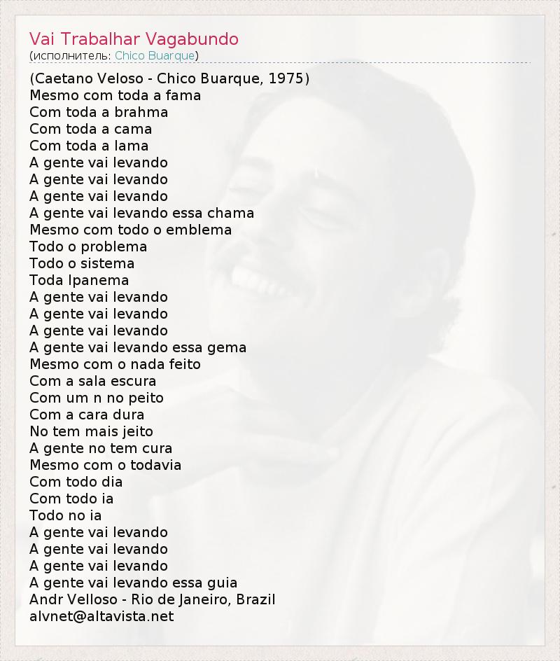 А как ты думаешь, о чем песня "Vai Trabalhar Vagabundo" ?