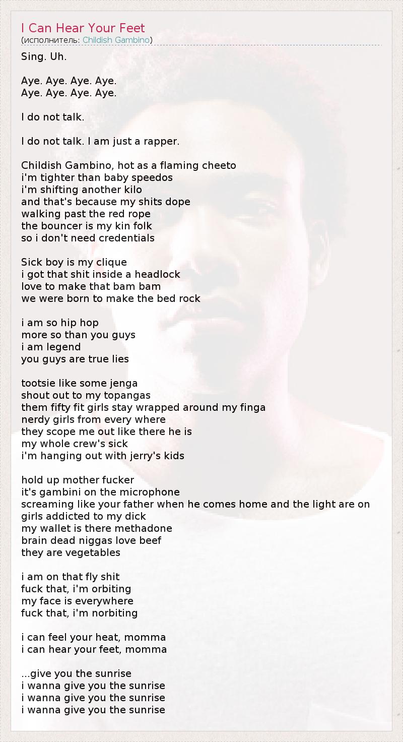 А как ты думаешь, о чем песня "I Can Hear Your Feet" ?
