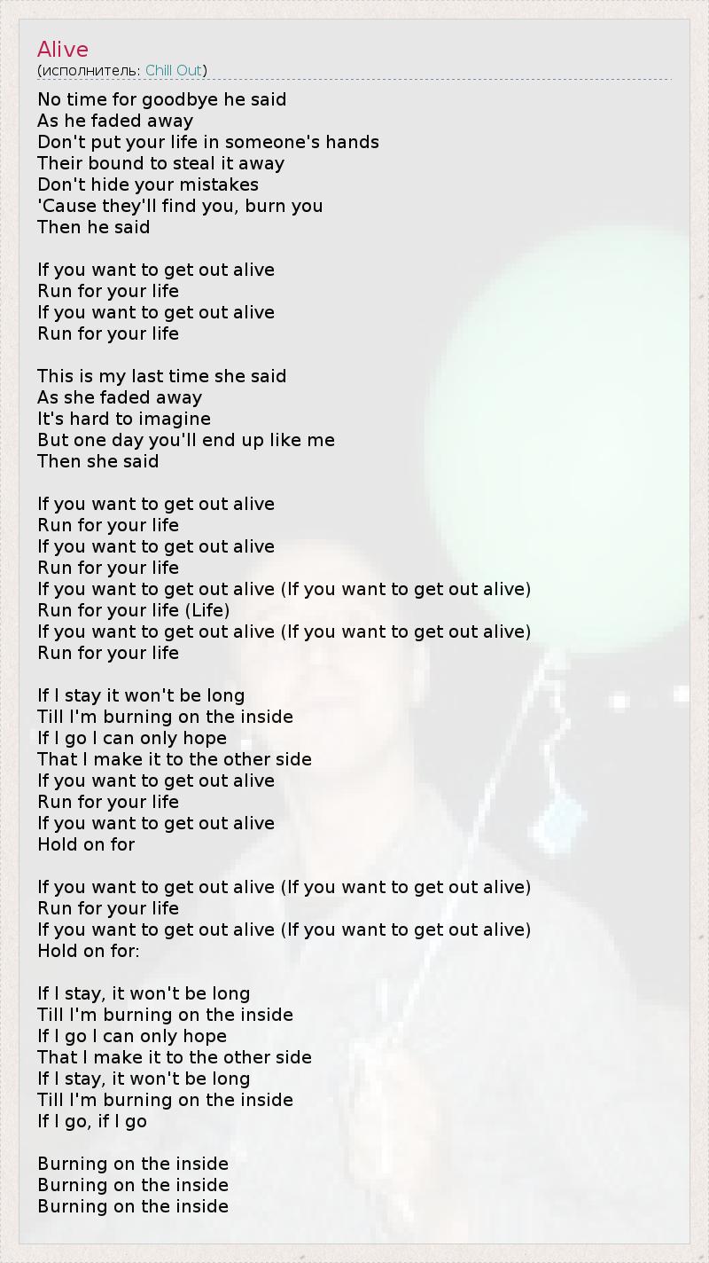 If you want to get out alive (If you want to get out alive)