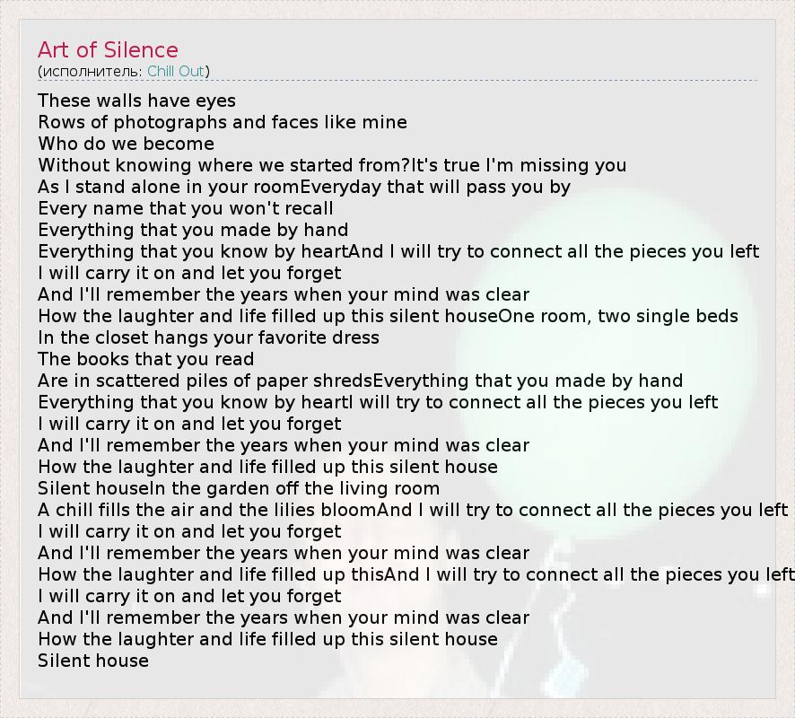 А как ты думаешь, о чем песня "Art of Silence" ?