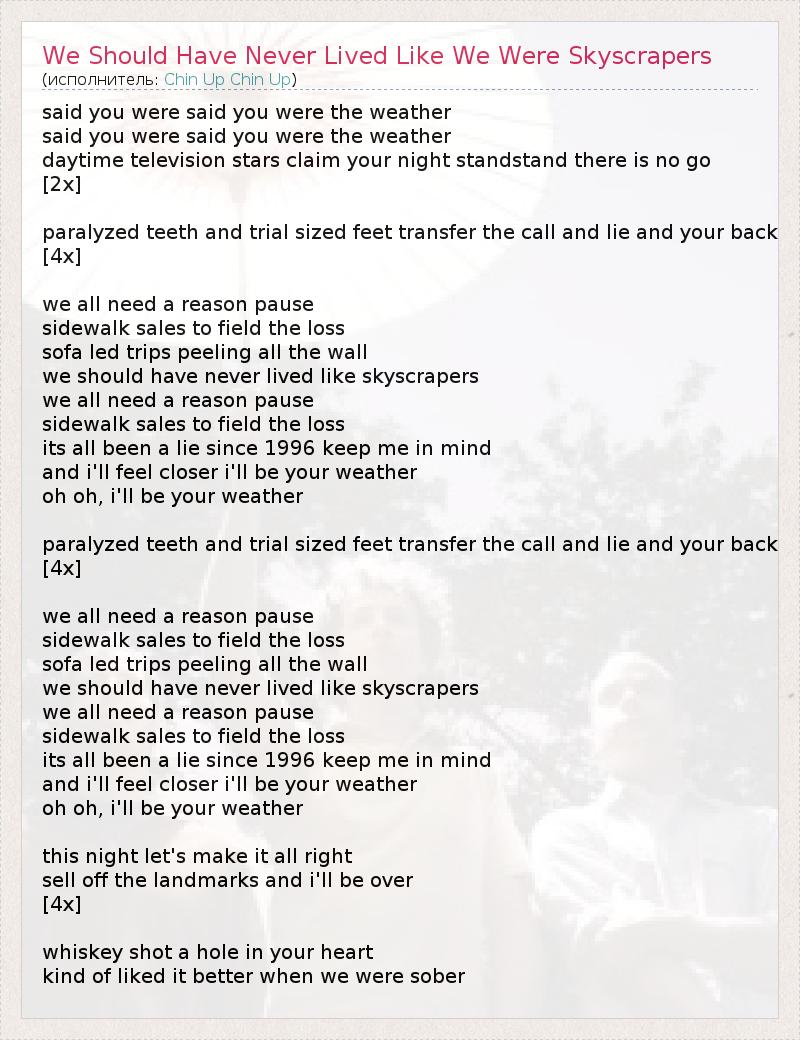 А как ты думаешь, о чем песня "We Should Have Never Lived Like We Were Skyscrapers" ?