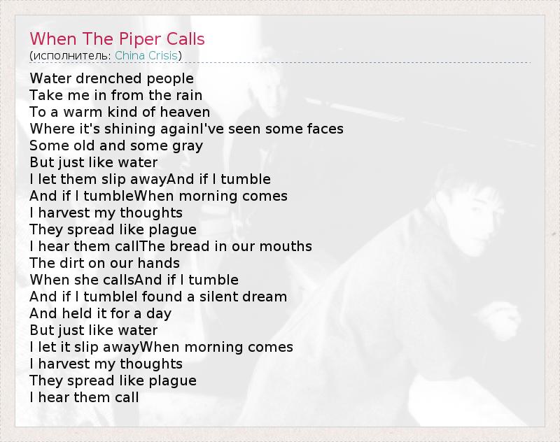 А как ты думаешь, о чем песня "When The Piper Calls" ?