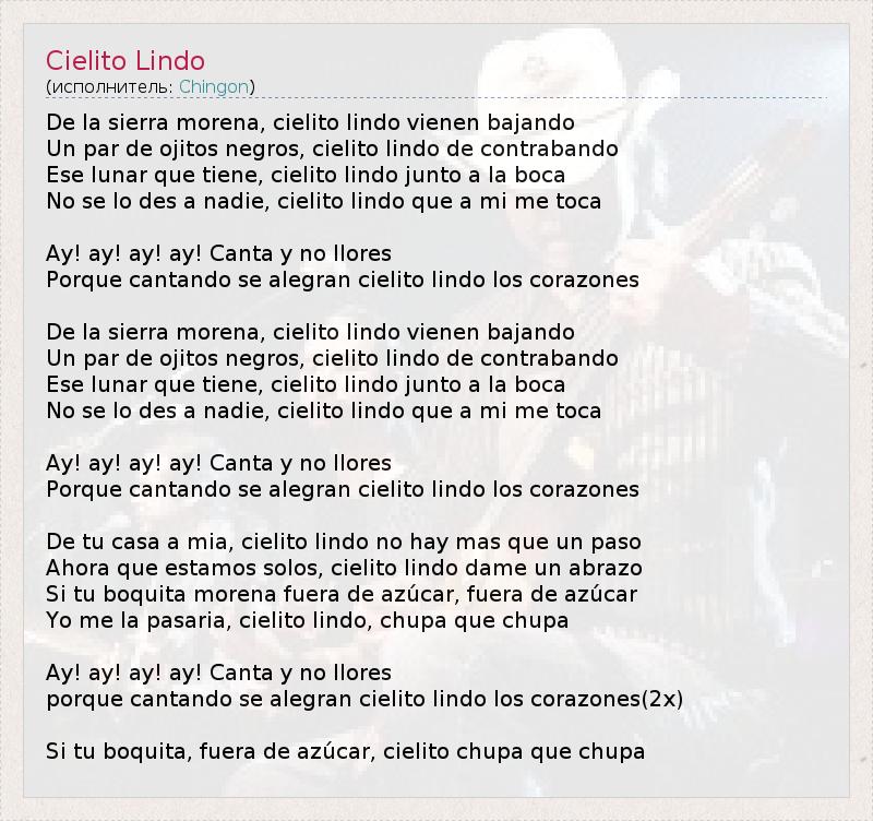 А как ты думаешь, о чем песня "Cielito Lindo" ?
