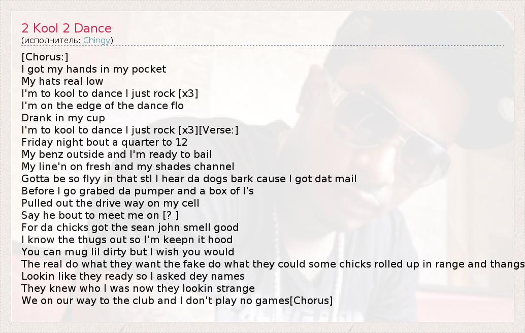 А как ты думаешь, о чем песня "2 Kool 2 Dance" ?