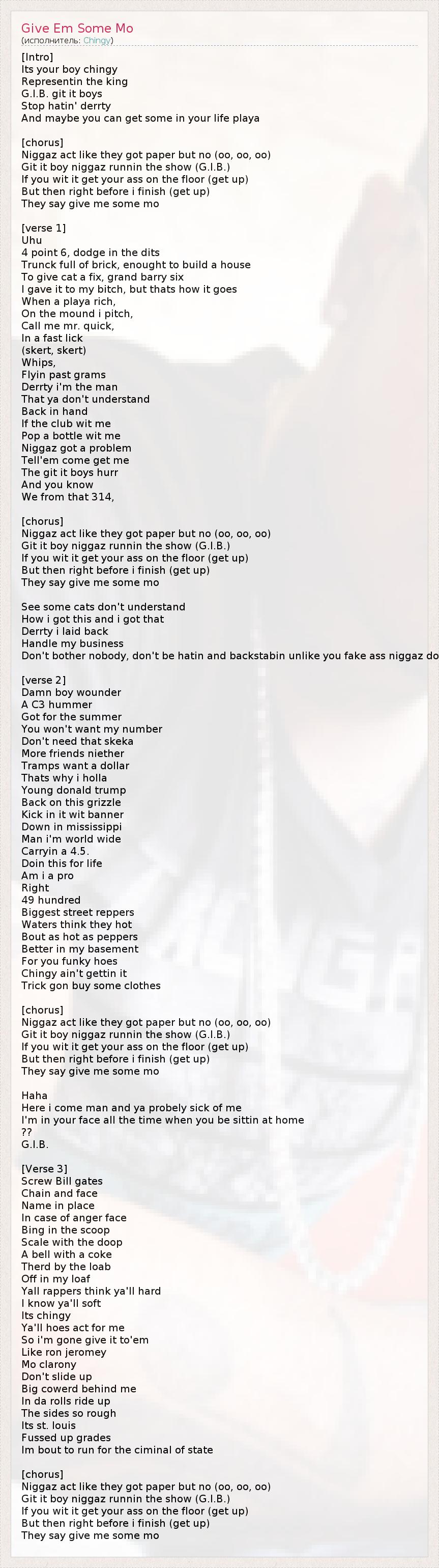 А как ты думаешь, о чем песня "Give Em Some Mo" ?