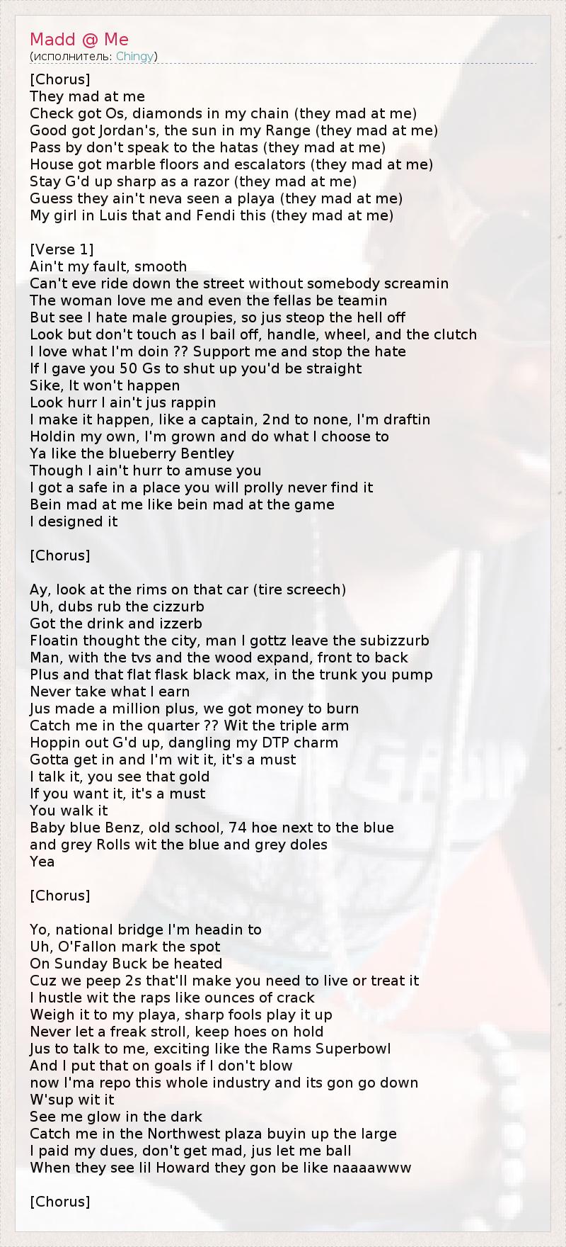 А как ты думаешь, о чем песня "Madd @ Me" ?