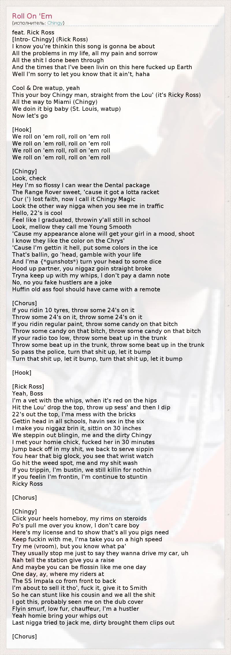 А как ты думаешь, о чем песня "Roll On 'Em" ?