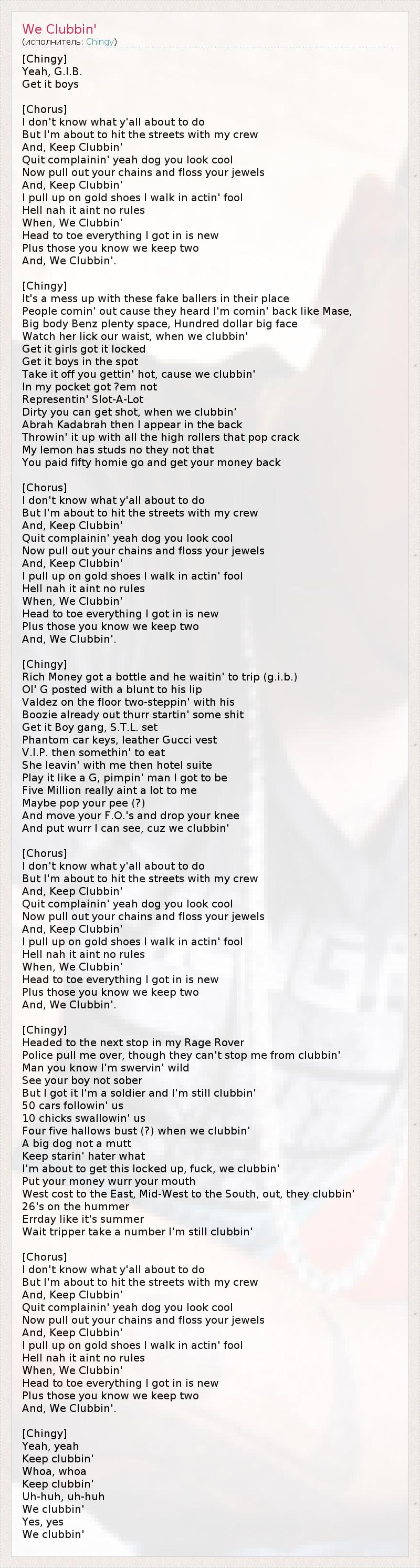 А как ты думаешь, о чем песня "We Clubbin'" ?