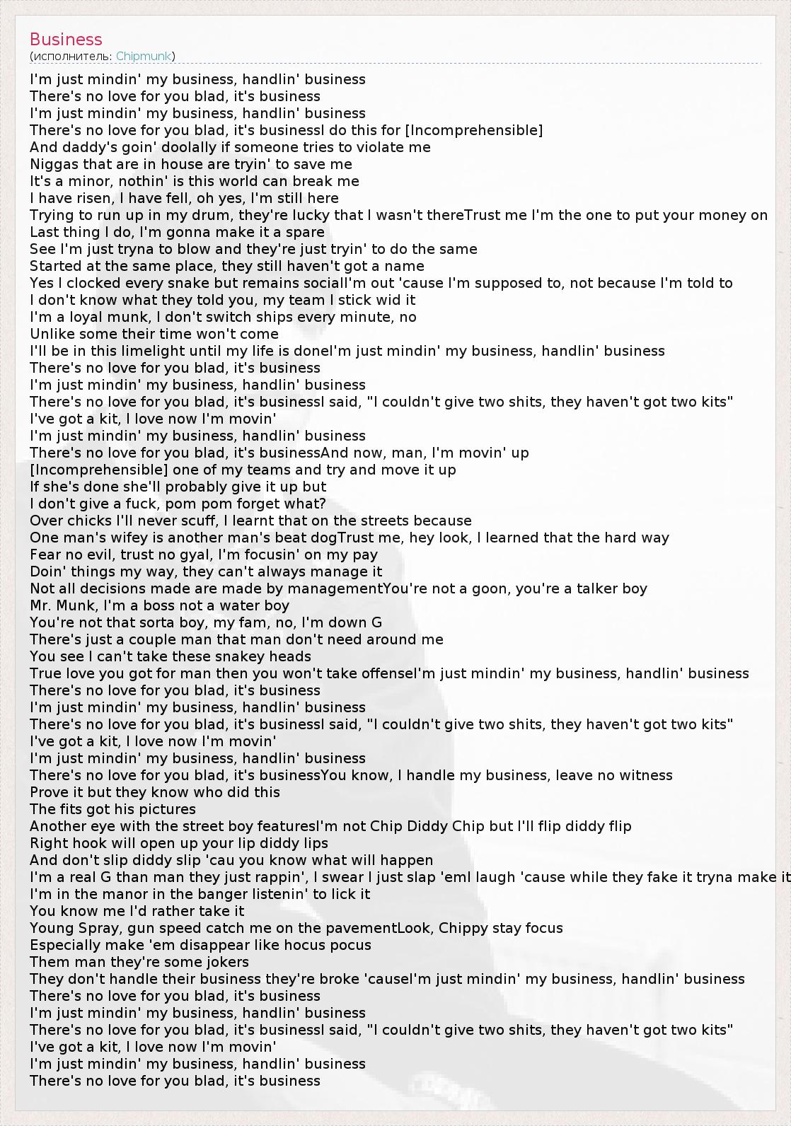 True love you got for man then you won't take offenseI'm just mindin' my business, handlin' business