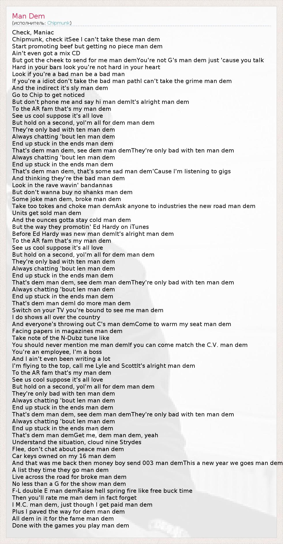 That's dem man dem, that's some sad man dem'Cause I'm listening to gigs