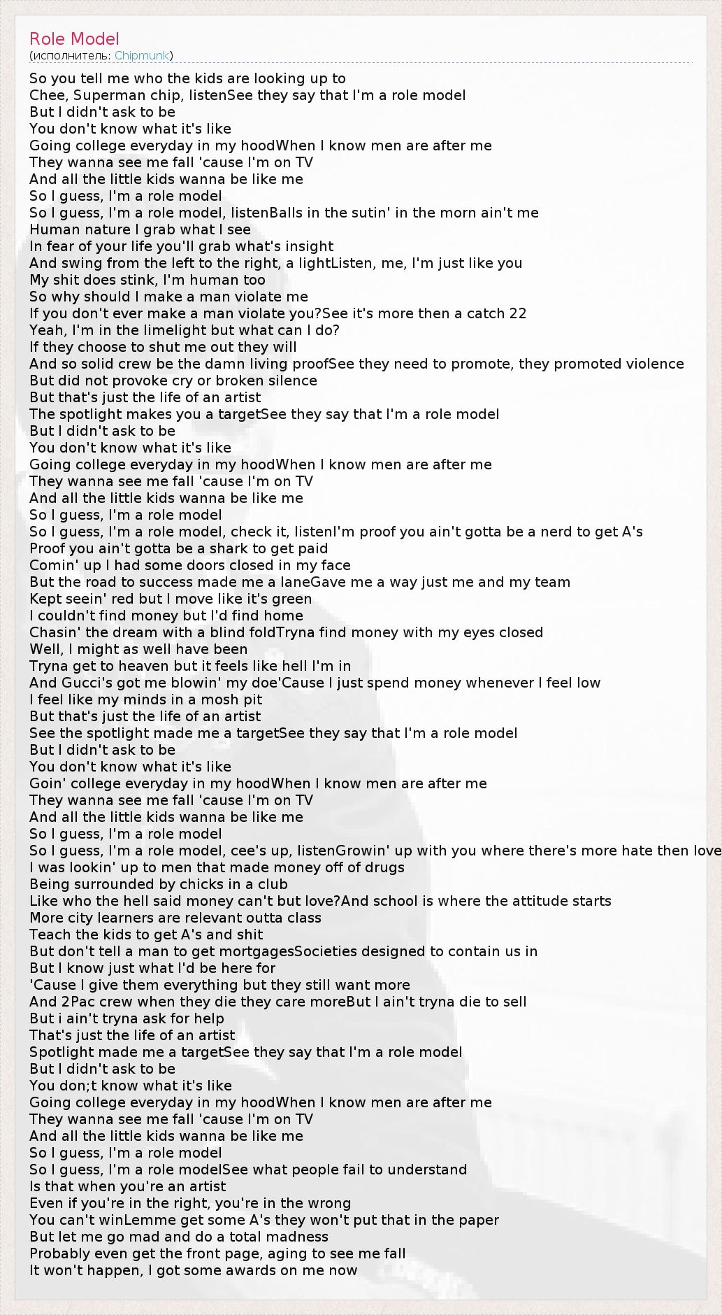 So I guess, I'm a role model, cee's up, listenGrowin' up with you where there's more hate then love